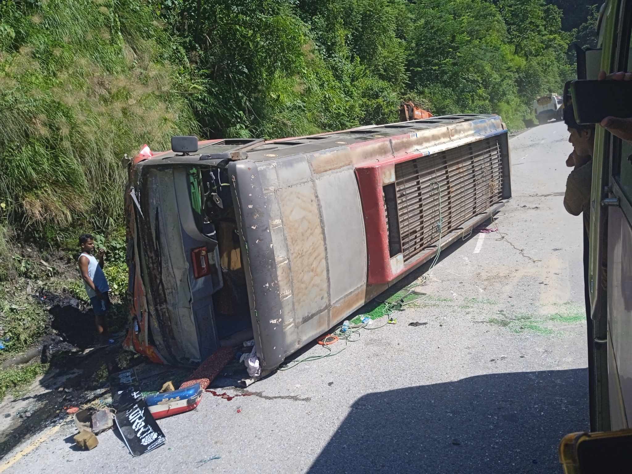 नारायणगढ मुग्लिन सडकखण्डमा बसमाथि ढुंगा खस्यो, २५ जना घाइते, दुइको अवस्था गम्भीर