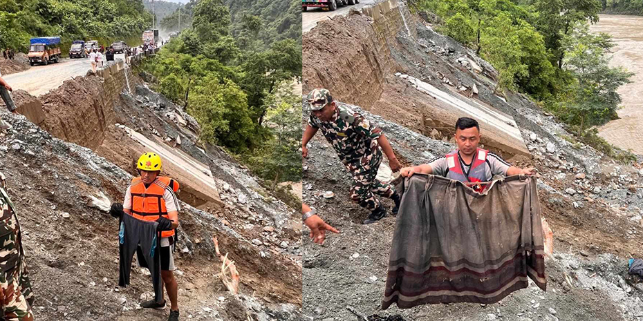 सिमलताल पहिरो : बेपत्ता दुई बसको पुन: खोजीका लागि घटनास्थलमा सुरक्षाकर्मी