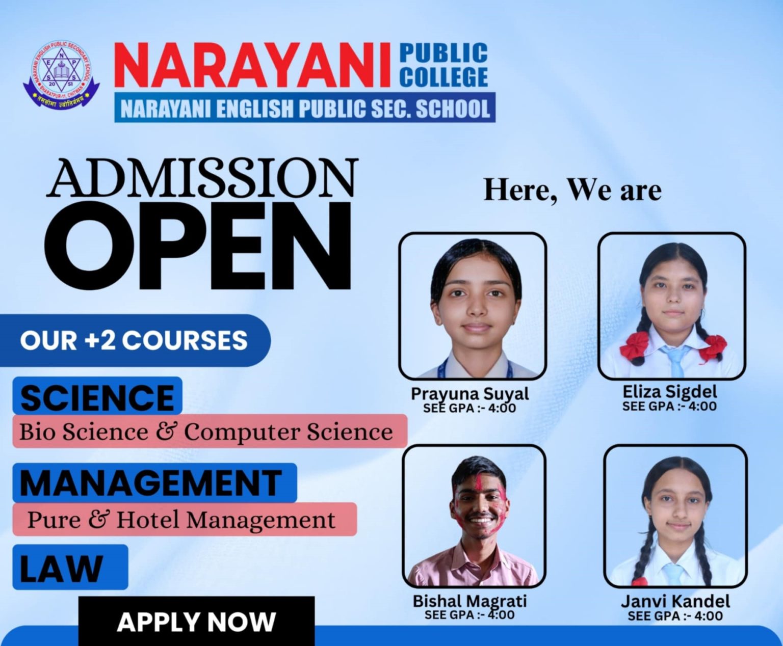 चितवनमा ४ जीपीए ल्याएका तीन विद्यार्थीको रोजाइमा नारायणी पब्लिक कलेज