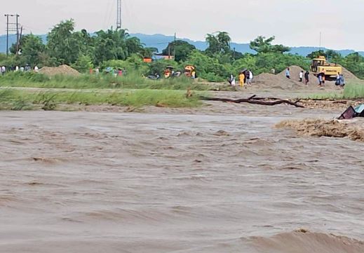 वर्षाका कारण माडी-ठोरी सडक अबरुद्ध
