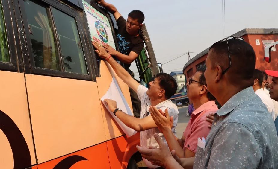 भरतपुर महानगरले सुरु गर्यो सार्वजनिक सवारीका साधनहरूमा भ्रमण वर्ष लोगो अंकित स्टिकर टाँस्न