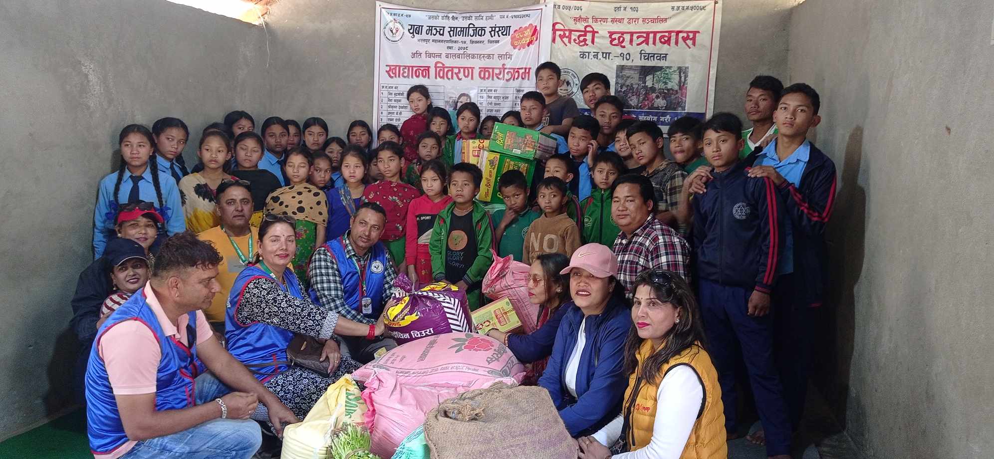 सिद्दी छात्रावासका विद्यार्थीहरुलाई युवा मञ्चको अगुवाईमा खाद्यान्न सहयोग हस्तान्तरण