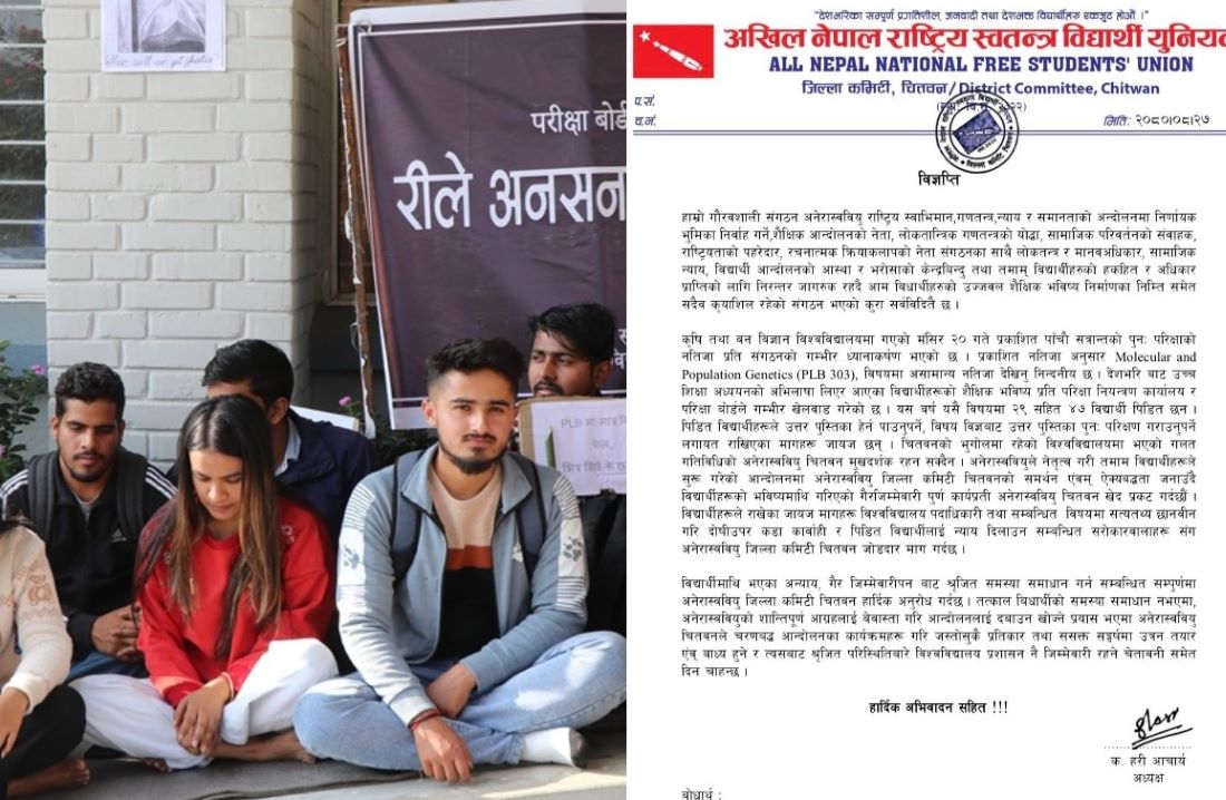 कृषि विश्वविद्यालयमा आन्दोलित विद्यार्थीहरुको माग पुरा गर्न अनेरास्ववियु चितवनको आग्रह
