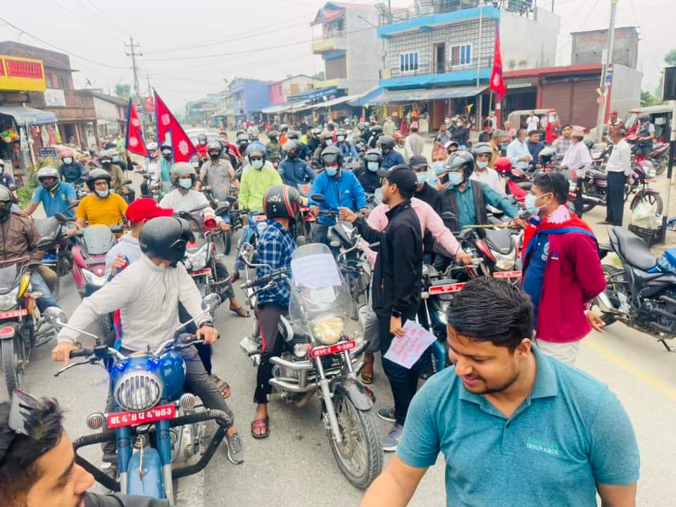 निकुञ्जभित्र धुलोरहित सडक निर्माणको दबाबका लागि मोटरसाइकल र्याली