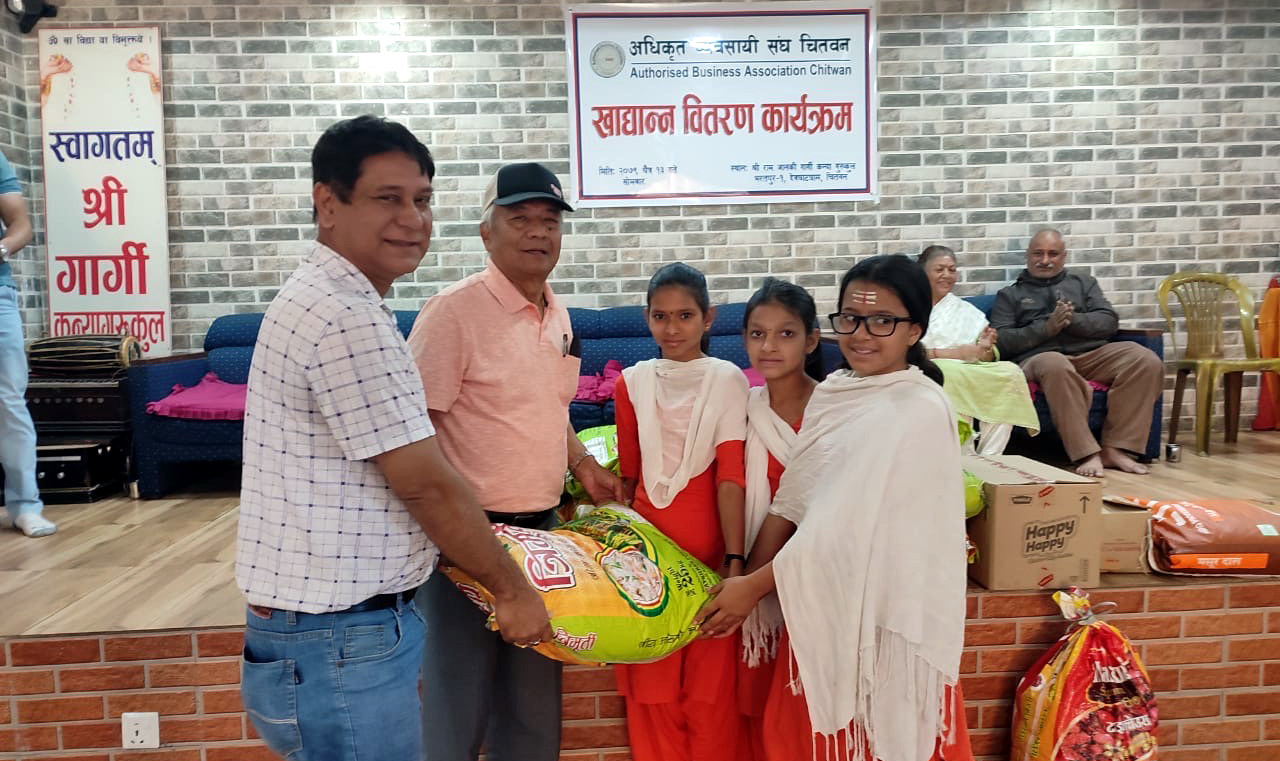 अधिकृत व्यवसायी संघद्वारा कन्या गुरुकुल, देवघाटमा खाद्यान्न सहयोग