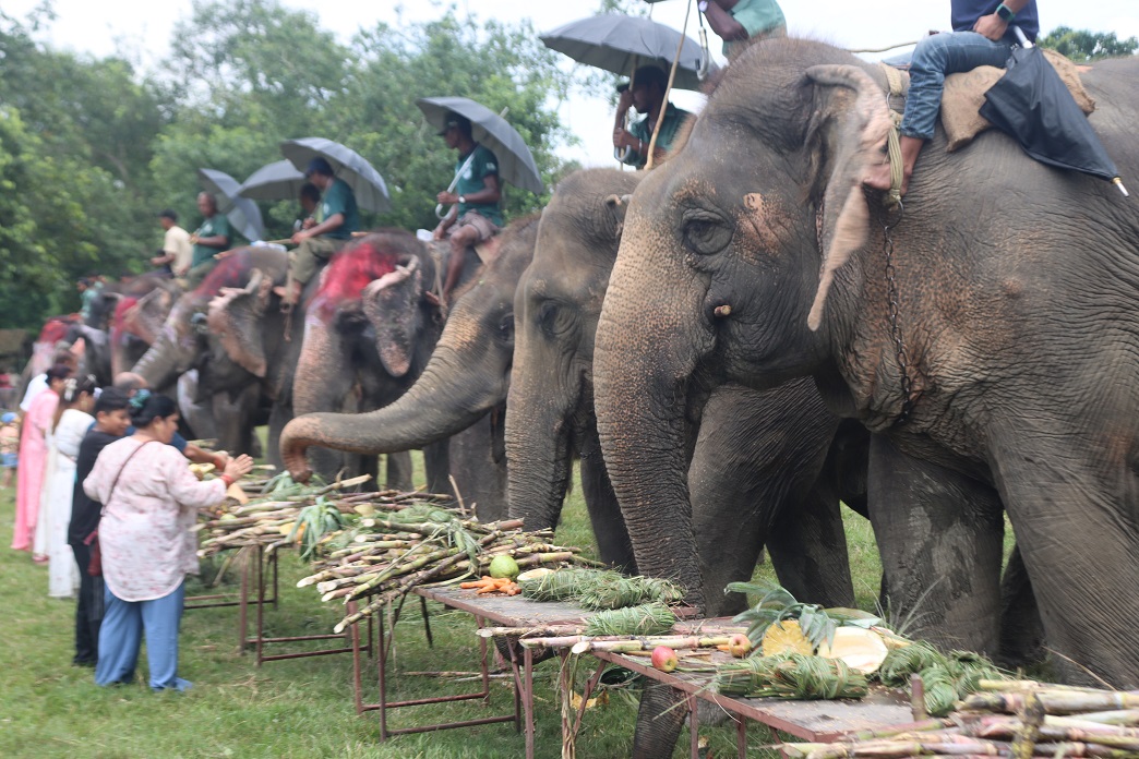चितवनको सौराहामा हात्तीको वनभोजः ६० वटा हात्तीलाई खुवाइयो मनपर्ने परिकार