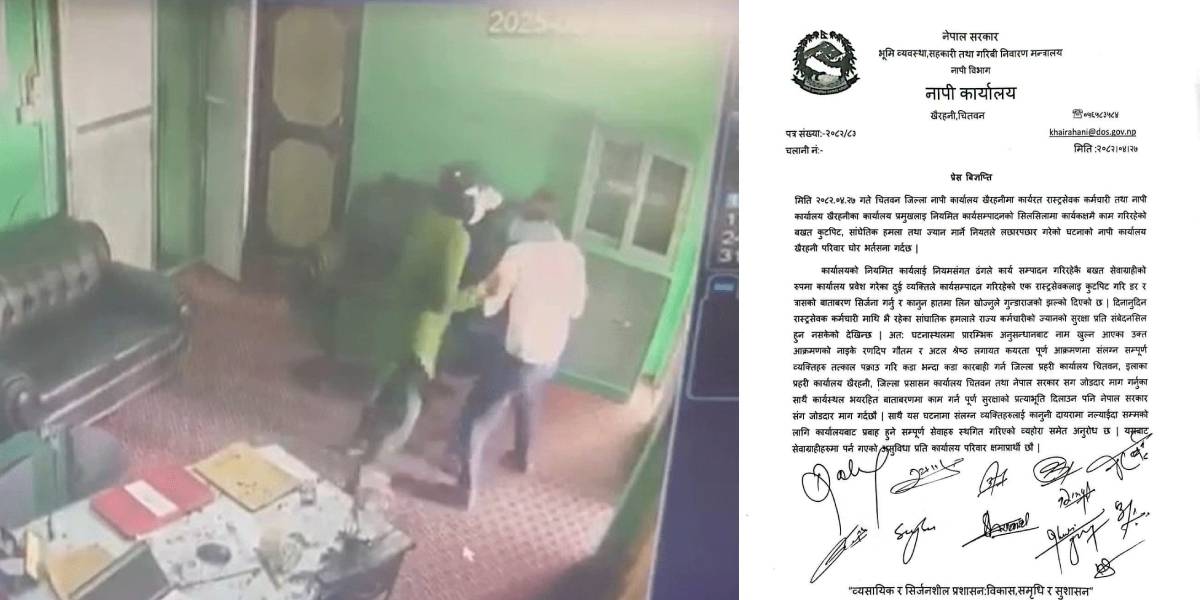 नापी कार्यालय खैरहनीका कार्यालय प्रमुख माथि आक्रमण
