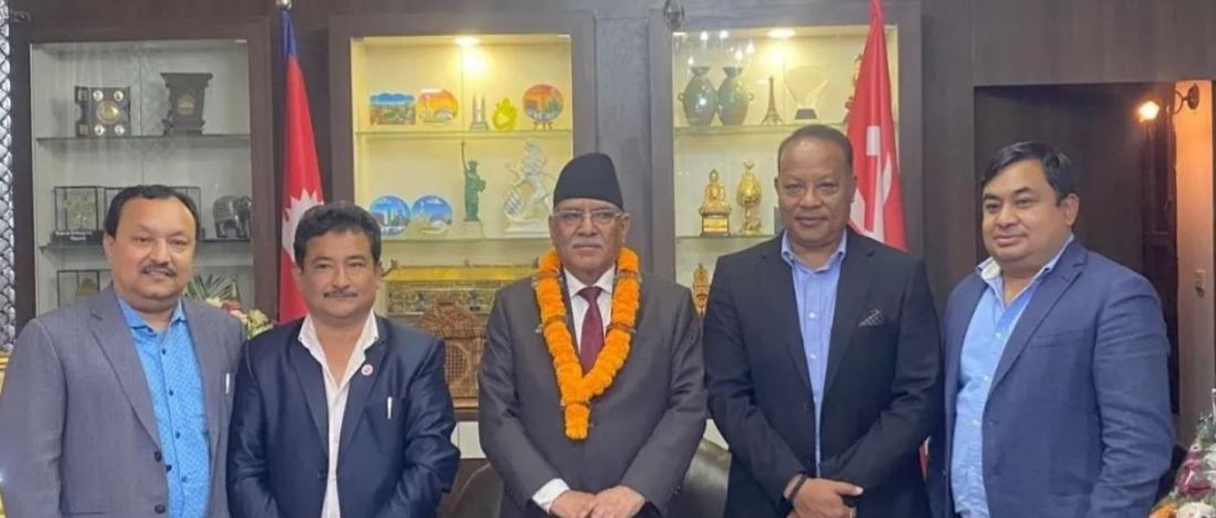 प्रधानमन्त्री प्रचण्डलाई भेट्न निवासमै पुग्यो चितवनका व्यवसायीको टोली