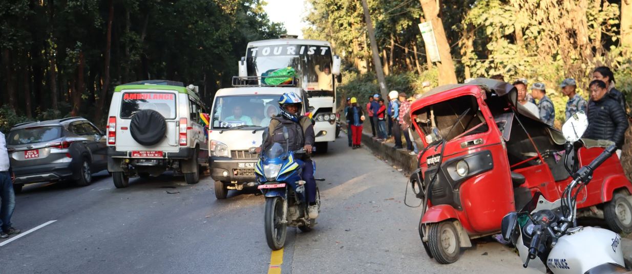 काठमाडौ जाँदै गरेको एम्बुलेन्स र अटो आँपटारीमा ठोक्किँदा ६ जना घाइते