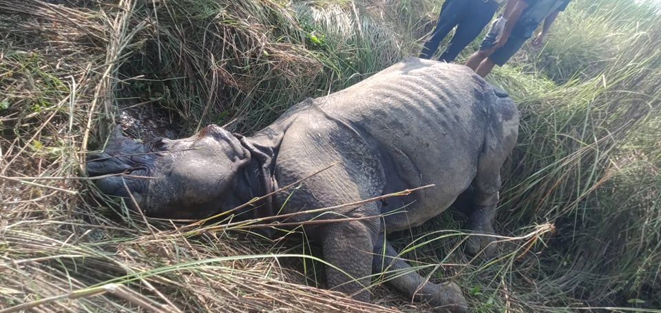 चितवन राष्ट्रिय निकुञ्जको पश्चिम क्षेत्रमा गैंडा मृत भेटियो