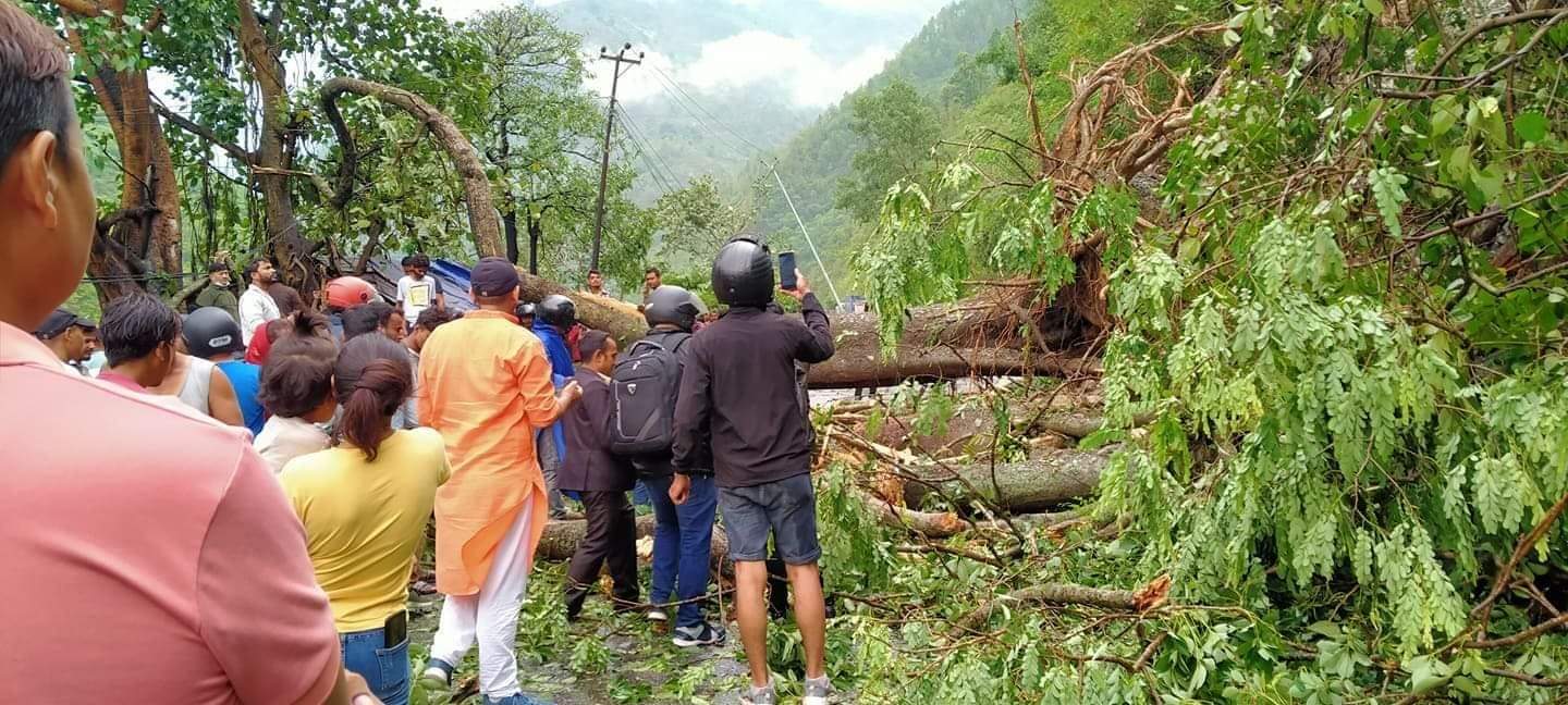 चितवनमा भिषण हावाहुरी : रूख र पोल ढल्दा नारायणगढ मुग्लिन सडक अवरुद्ध