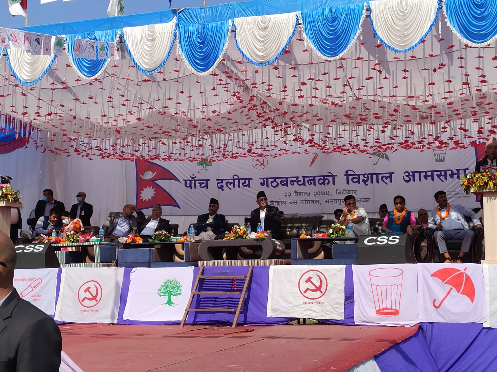 भरतपुरमा गठबन्धनको आमसभा स्थल डुबानमा परेपछि सेफ्टी ट्ंयाकरले पानी तानियो, माटो भरेर डोजरले सम्म्याइयो (फोटो/भिडियो)