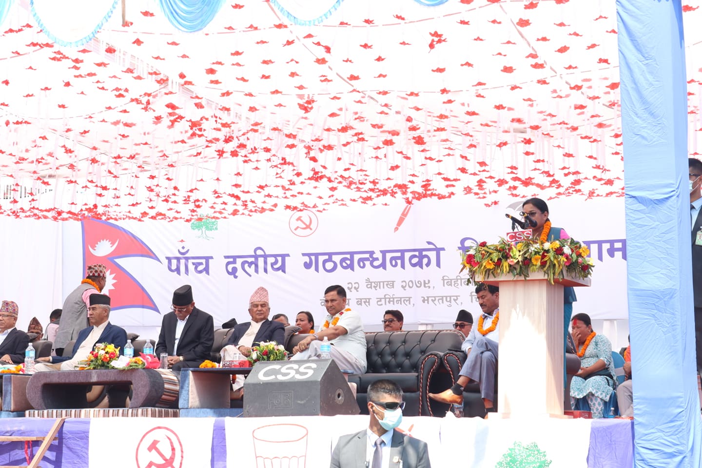 चितवनमा संयुक्त सभालाई सम्बोधन गर्दौ प्रचण्डले भने: लाल सलाम, जय नेपालको अभिवादन