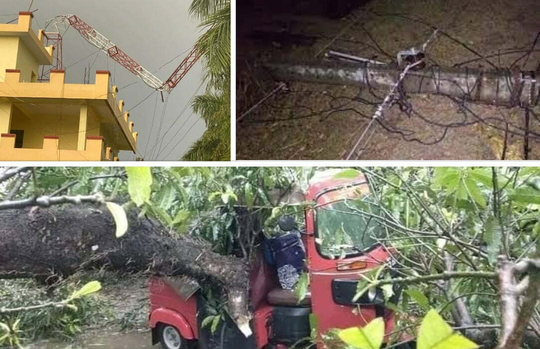चितवनमा हावाहुरीको वितण्डा : पोलहरु ढले, भरतपुर एफएमको टावर ढल्यो, रुख ढल्दा अटो दुर्घटना
