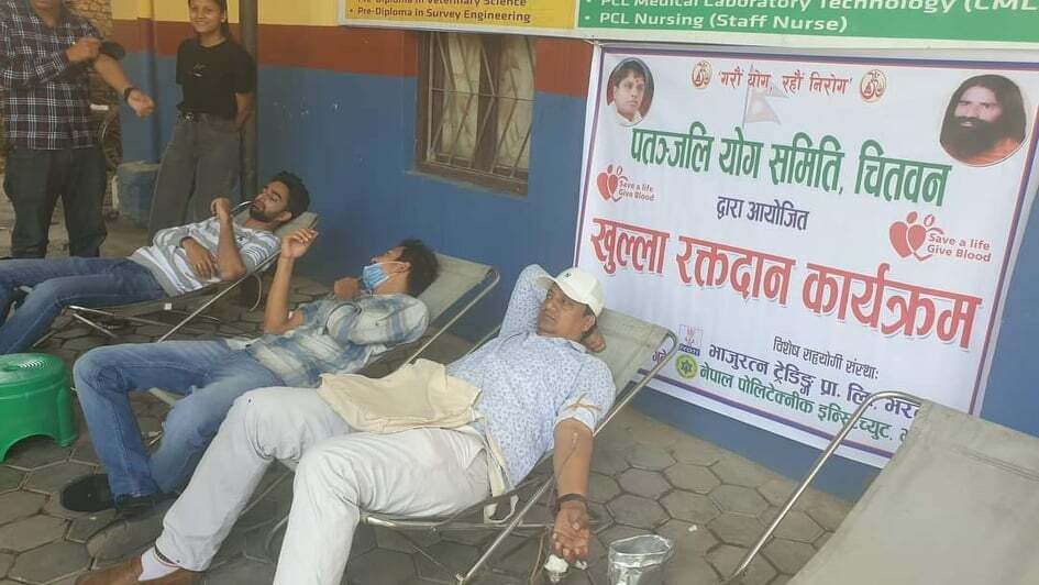 चितवनमा पतञ्जलीको रक्तदान कार्यक्रम सम्पन्न : ६० जनाले गरे रक्तदान