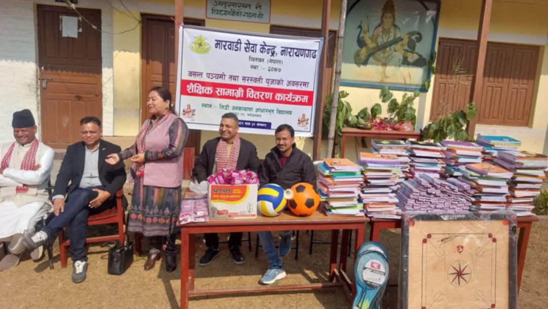 मारवाडी सेवा केन्द्र नारायणगद्वारा विपन्न विद्यार्थीलाई शैक्षिक सामाग्री सहयोग