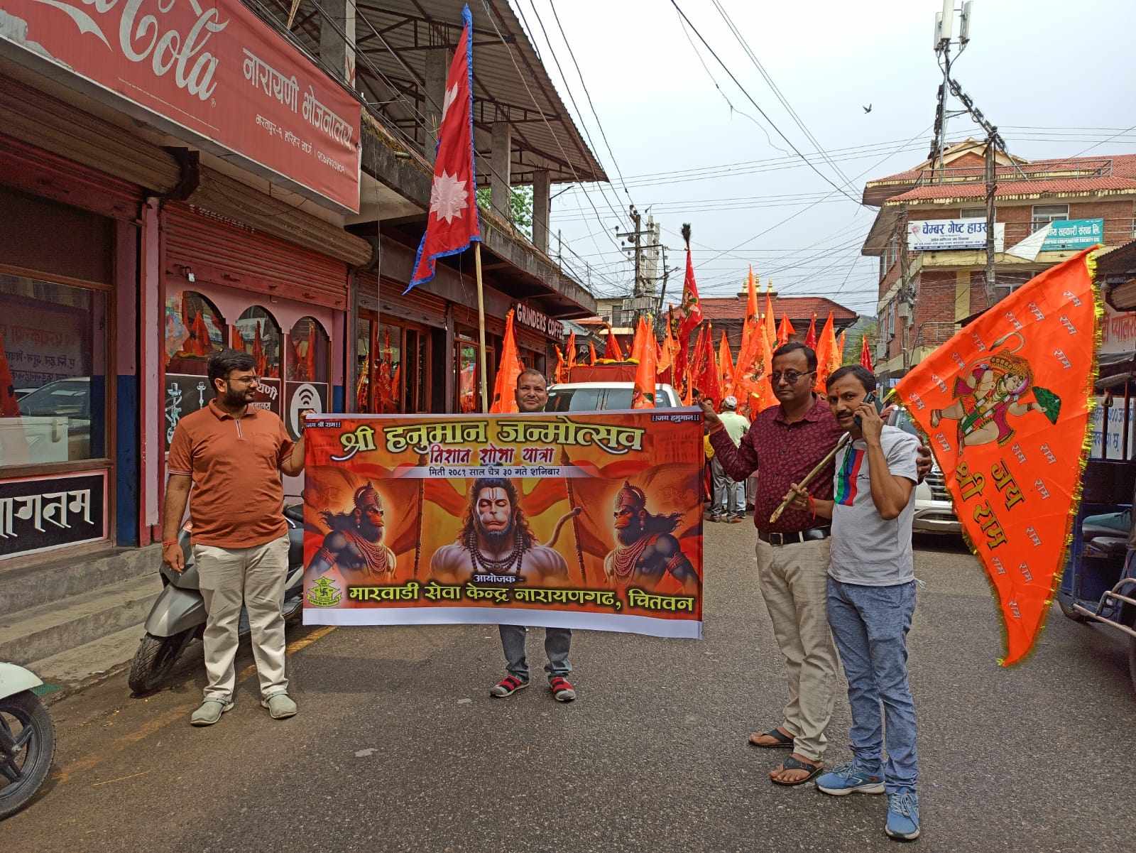हनुमान जयन्तीको अवसरमा मारवाडी सेवा केन्द्रकाे निशान यात्रा