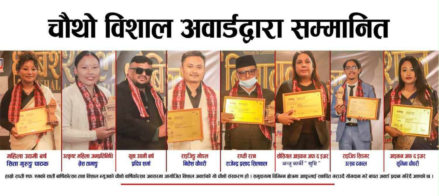 चौथो बिशाल अवार्ड २०८२ सम्पन्न, विभिन्न विधामा विशिष्ट व्यक्तित्व सम्मानित