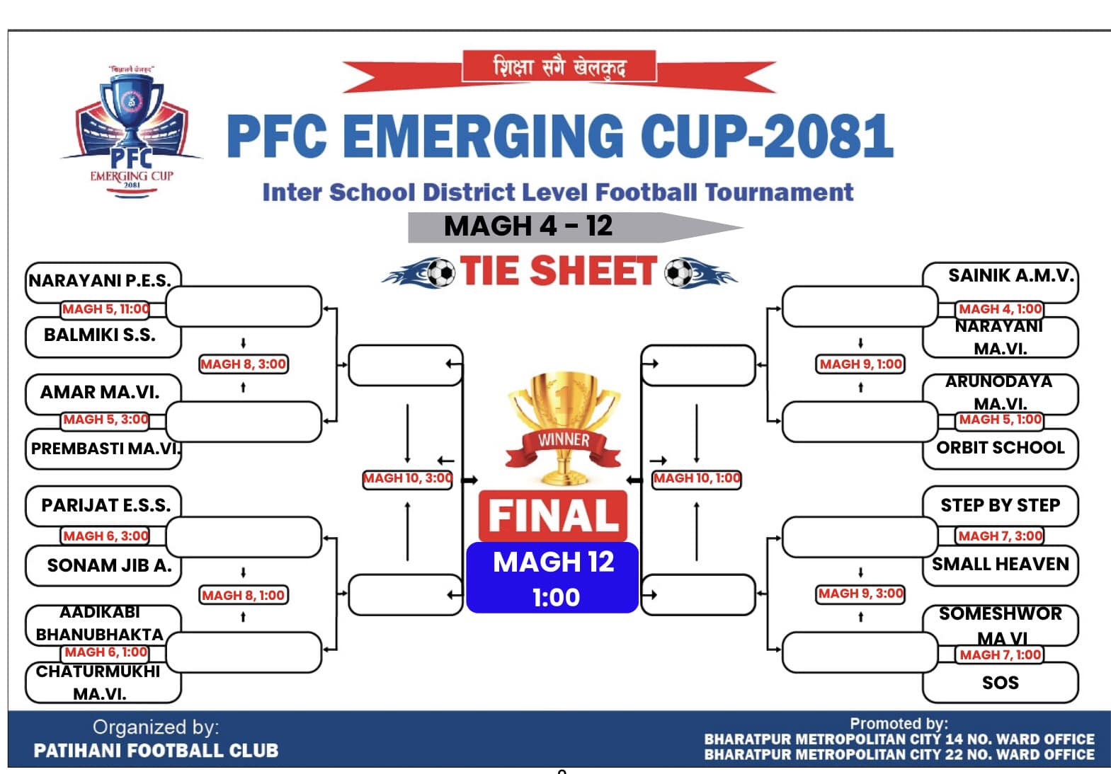 तेस्रो पीएफसी इमर्जिङ आज देखि, चितवनका १६ विद्यालयहरूबीच प्रतिस्पर्धा हुँदै