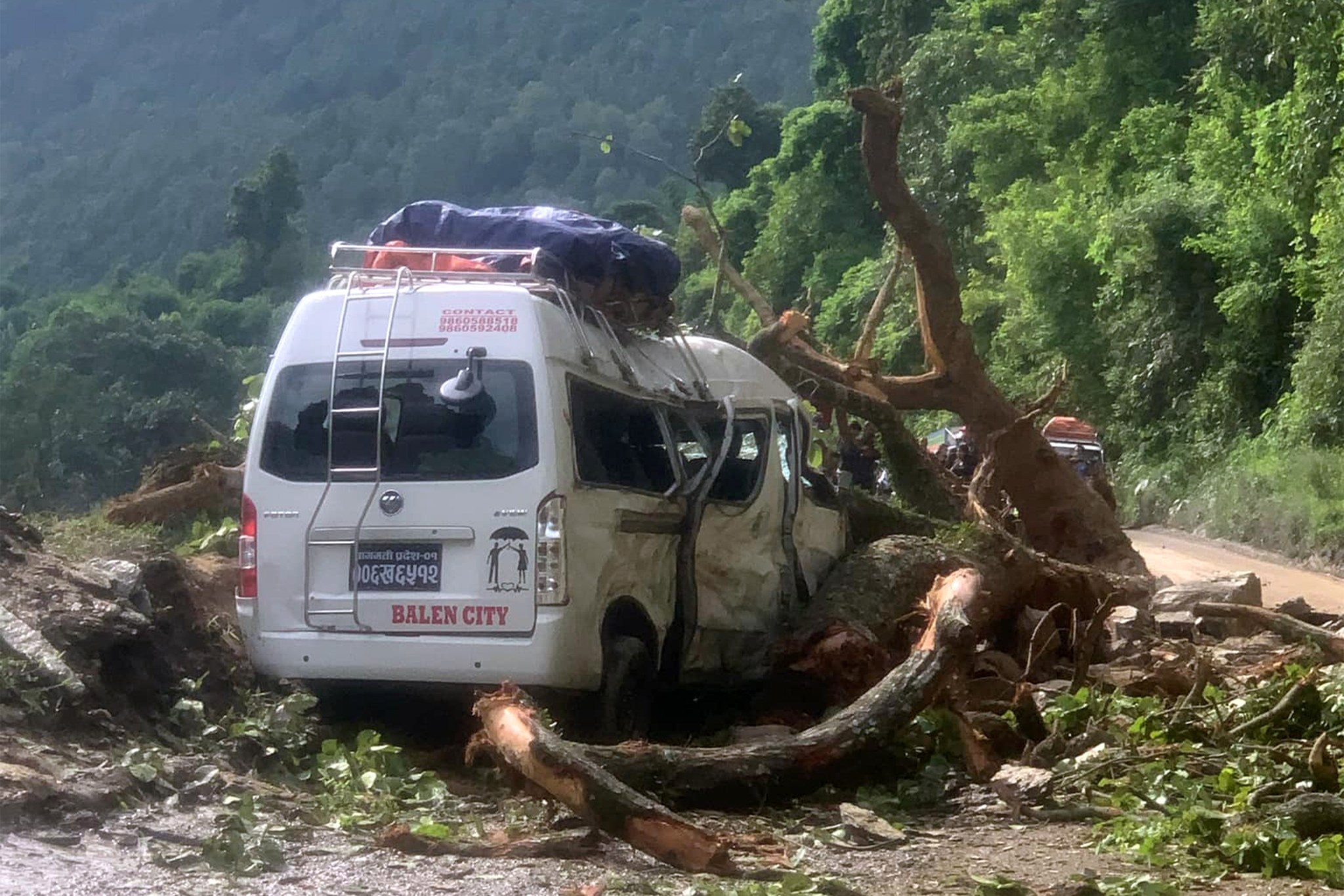 धादिङमा गुडिरहेको माइक्रो बसमाथि रुख ढल्यो, ७ यात्रु घाइते