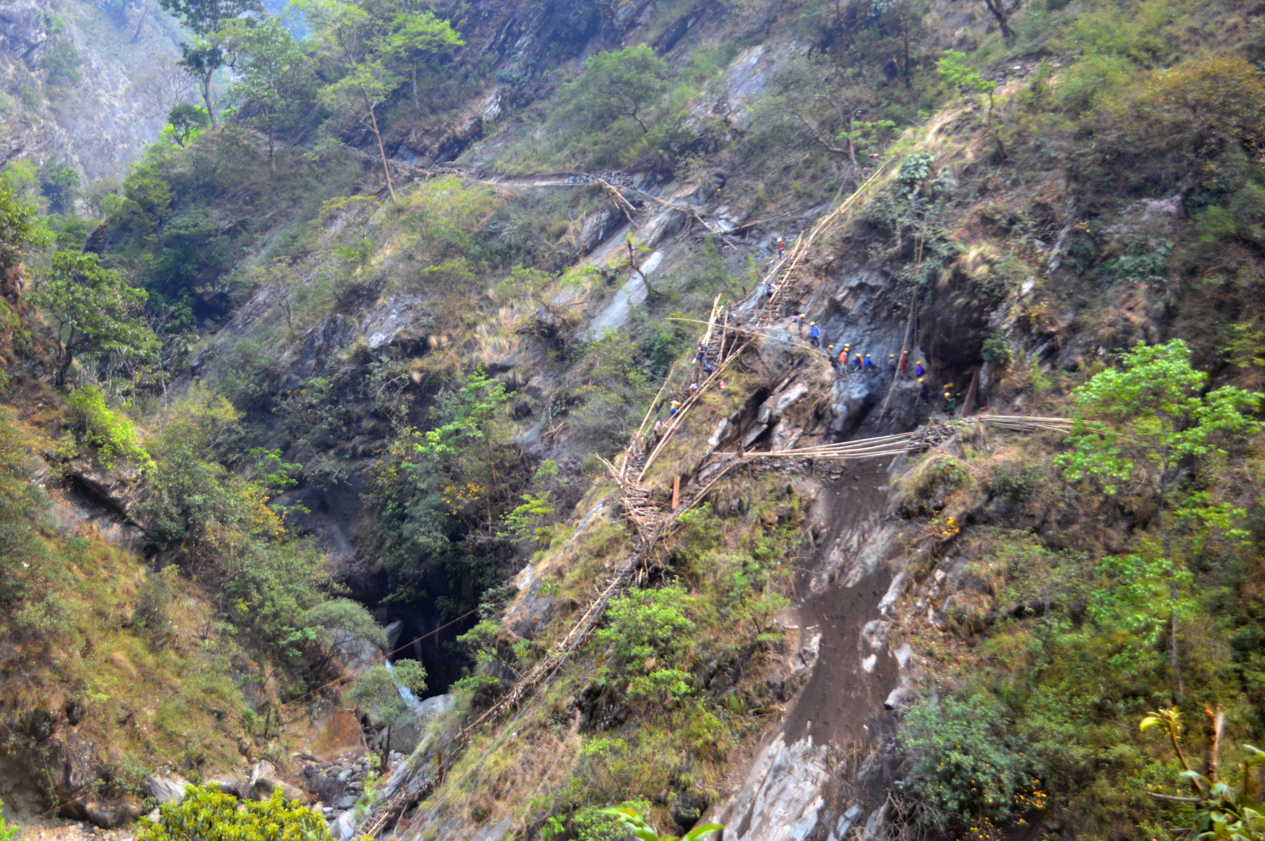 गोरखाको रुन्चेतगाउँ पुग्न भिर खोपेर झोलुङ्गे पुल बनाइँदै