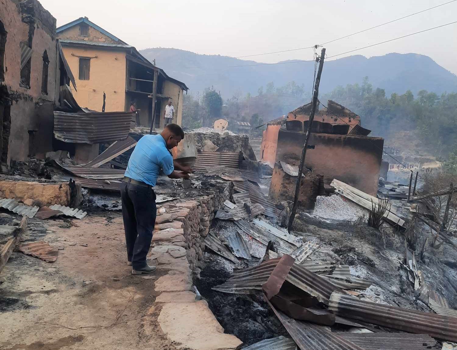 नवलपुरमा जंगलको आगो गाउँमा सल्कँदा चार घर जलेर नष्ट