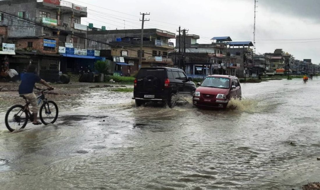 गए रातिदेखि परेको वर्षाले कावासोती जलमग्न