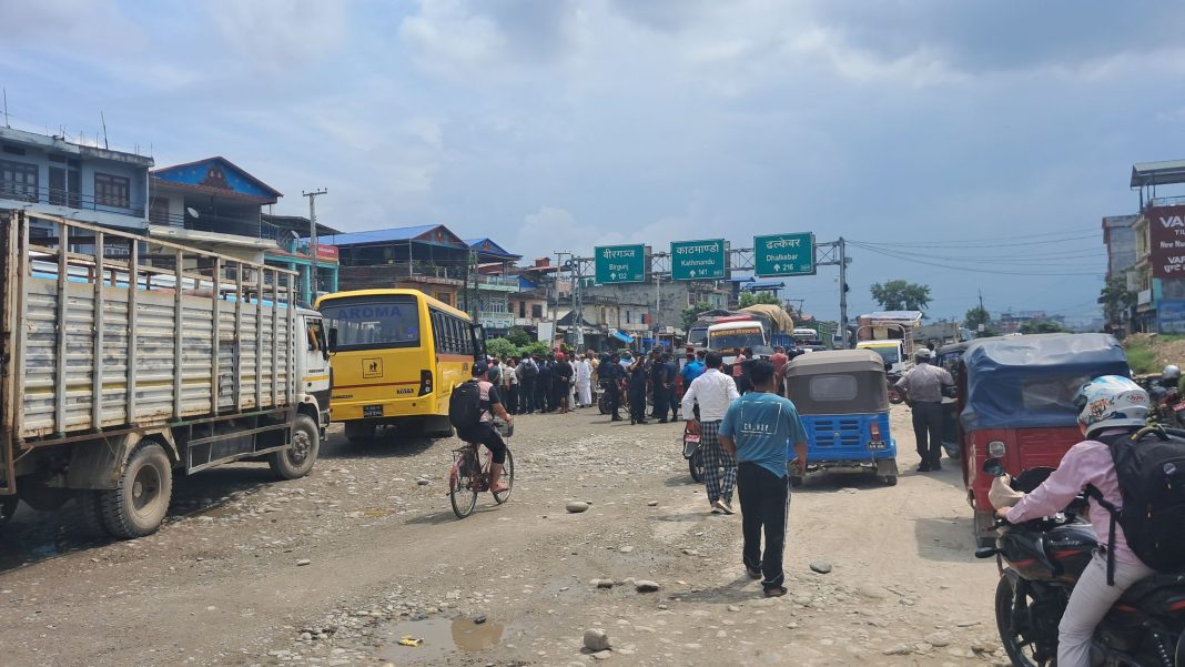 नारायणगढ–बुटवल सडक निर्माण ढिलो गरेको भन्दै गैँडाकोटमा चक्काजाम