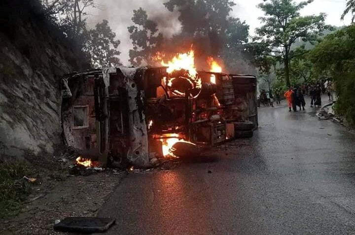 दाउन्नेमा बसमा आगलागी हुँदा ३३ यात्रु घाइते, ६ जनाको अवस्था गम्भीर
