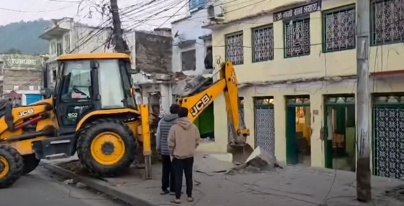 हेटौंडामा बिहानैदेखि अतिक्रमित संरचना हटाउन थालियो