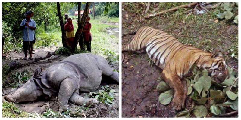 चितवन राष्ट्रिय निकुञ्जमा बाघ र गैँडा मृत फेला