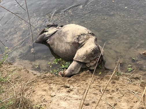 नवलपुरको कावासोती धापमा भासिएर गैँडाको मृत्यु