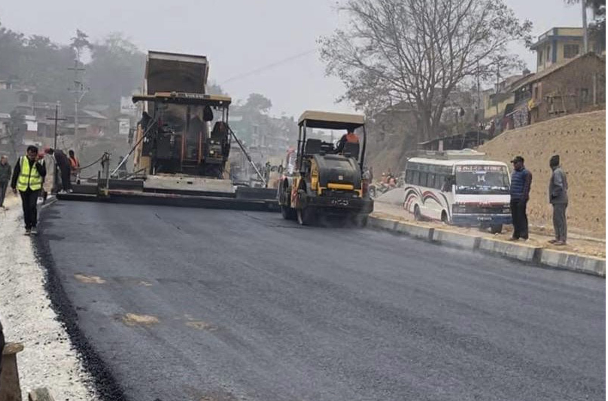 मुग्लिन–पोखरा सडक विस्तार : ठेक्का तोड्ने चेतावनी दिएपछि धमाधम कालोपत्र गर्न सुरु