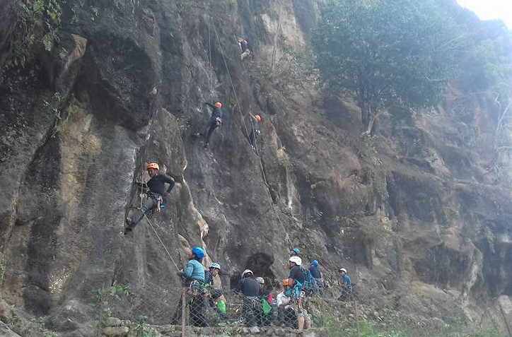 बन्दीपुरको चुनपहरामा चट्टान आरोहण
