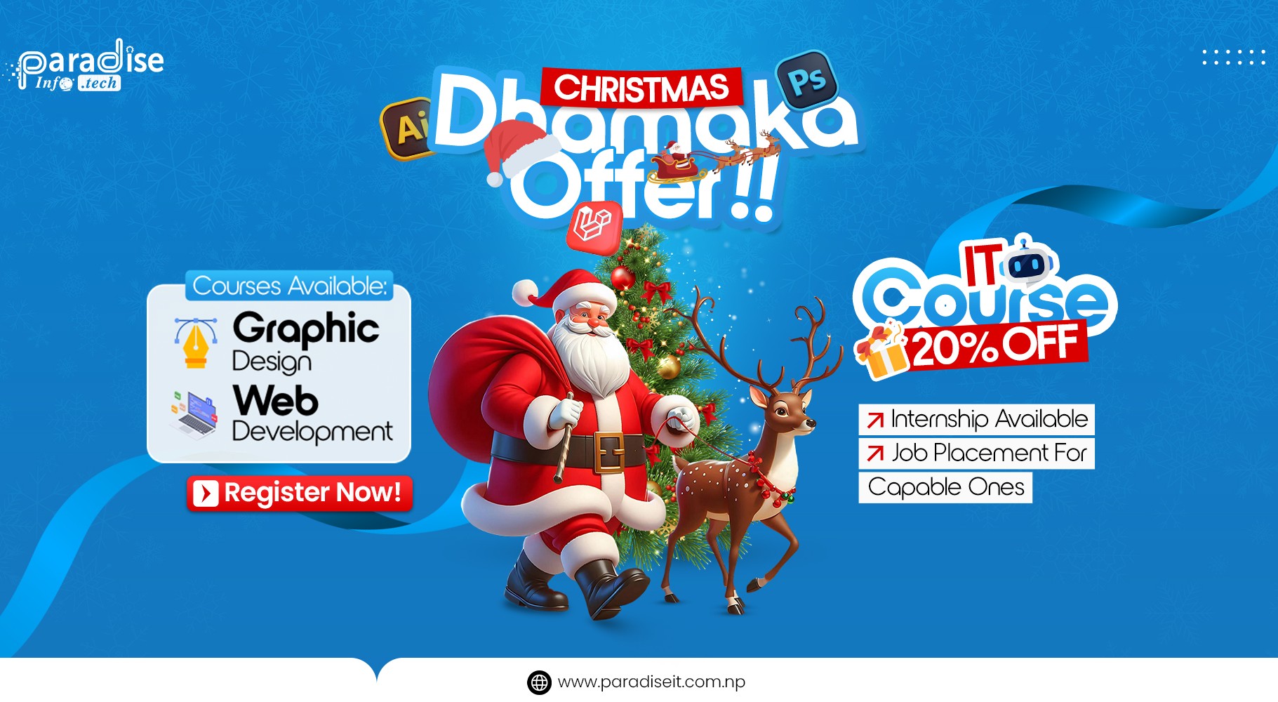 प्याराडाइज इन्फोटेक चितवनमा क्रिसमस अफर : ग्राफिक डिजाइन र वेब डेभपमेन्टका कक्षामा २० प्रतिशत छुट