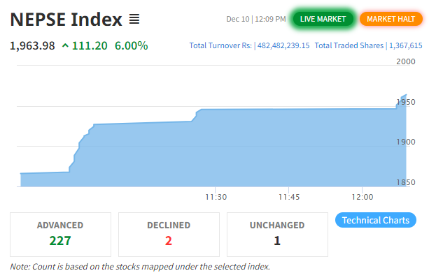 नेप्से परिसूचक छ दशमलब ५५ अङ्कले बढ्यो