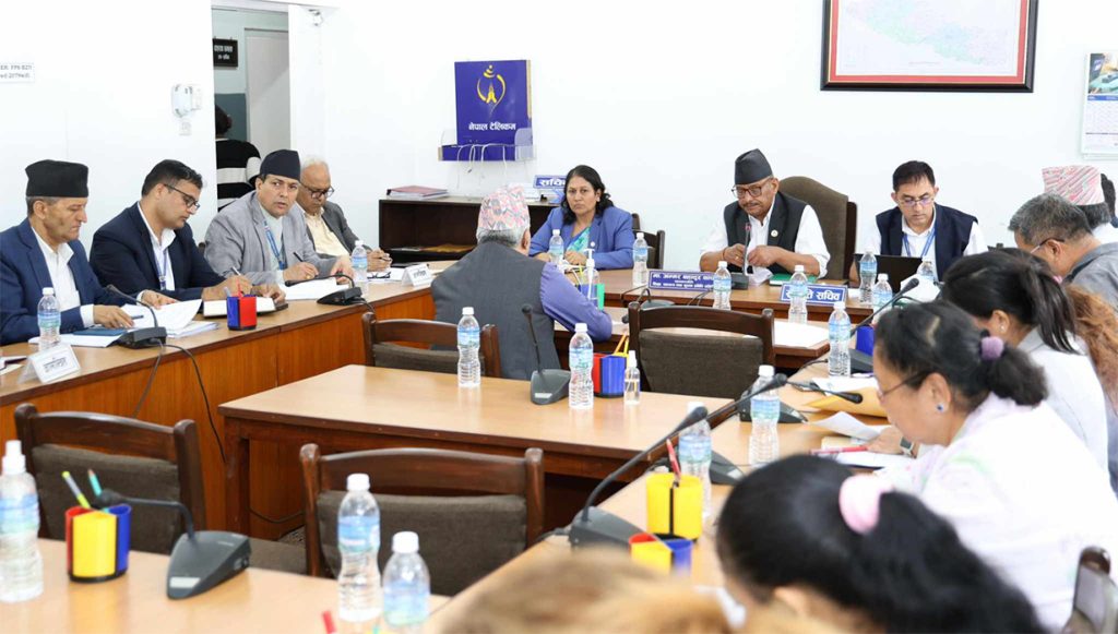 विद्यालय शिक्षा विधेयकबारे मन्त्रीसँग छलफल गर्दै संसदीय समिति