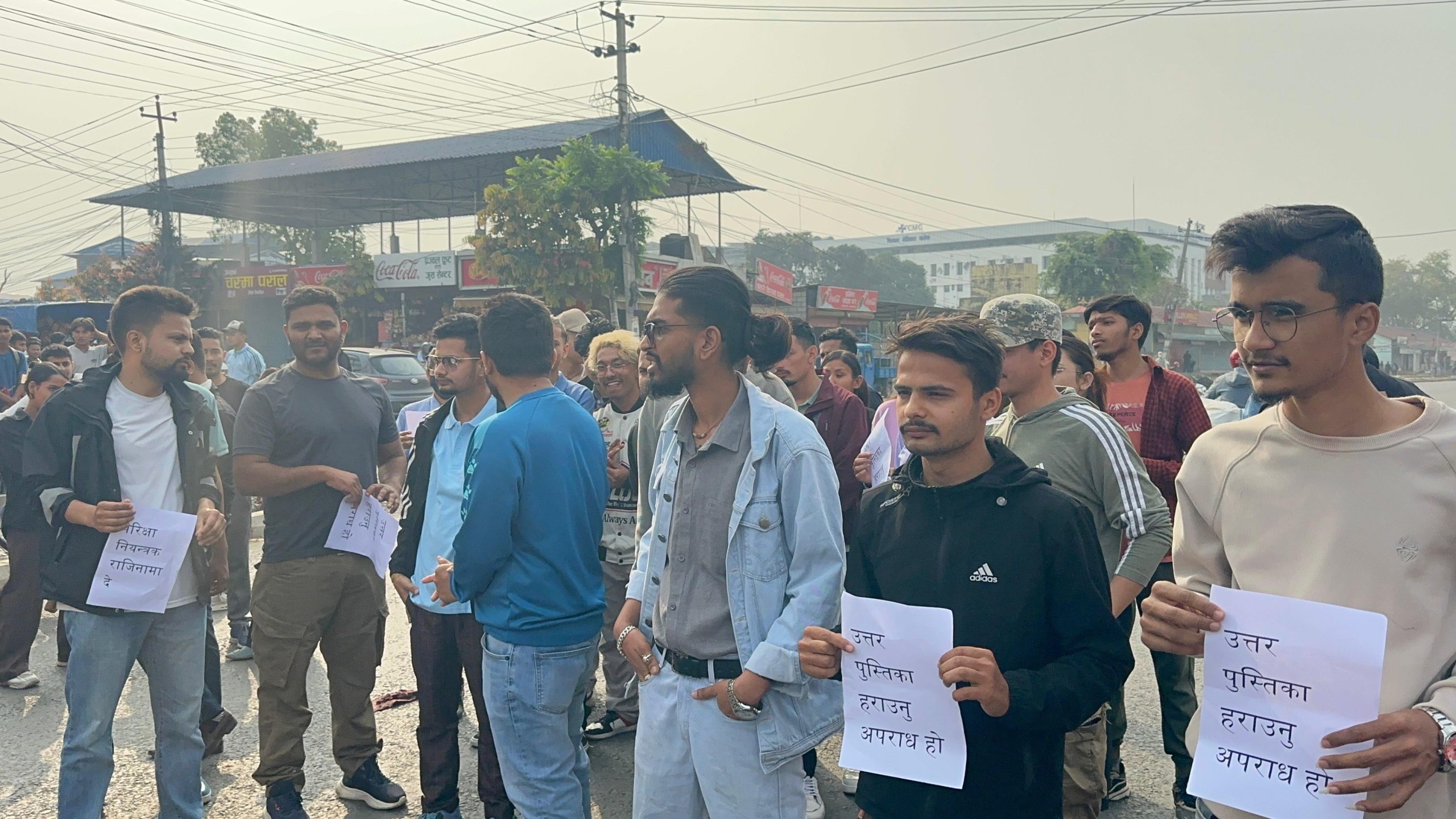 त्रिविले उत्तरपुस्तिका हराइदिएपछि चितवनस्थित वीरेन्द्र क्याम्पसका विद्यार्थीद्वारा राजमार्गमा प्रदर्शन