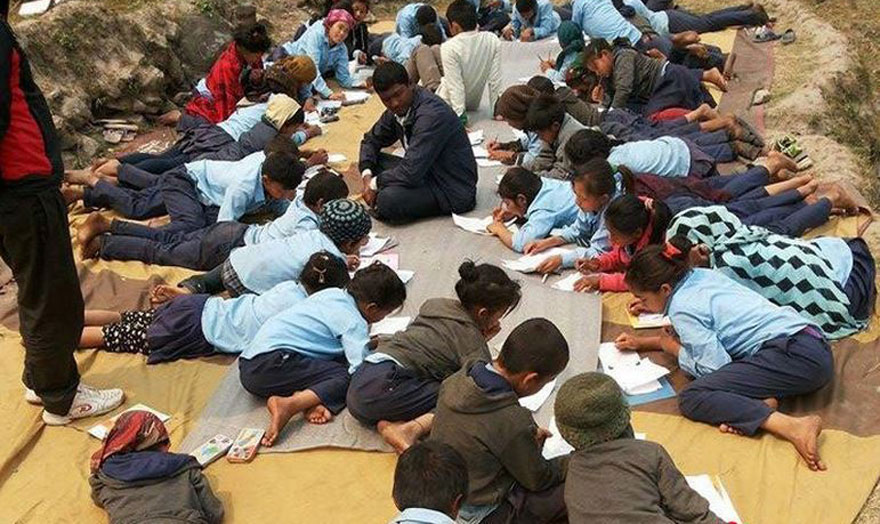पहिराले विद्यालय भवन पुरिएपछि पठनपाठनमा समस्या