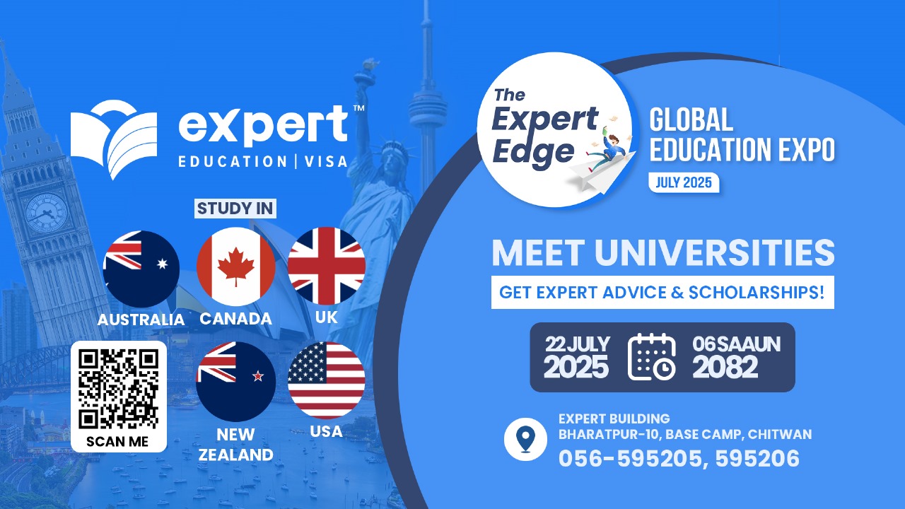 एक्सपर्ट चितवनमा आज ५० बढी युनिभर्सिटी तथा कलेजका प्रतिनिधिलाई प्रत्यक्ष भेट्न पाइने