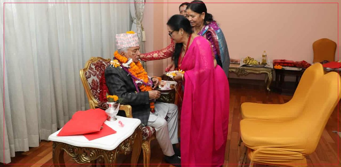 राष्ट्रपति पौडेलले शुभसाइतमा लगाए बहिनीहरूबाट तिहारको टीका
