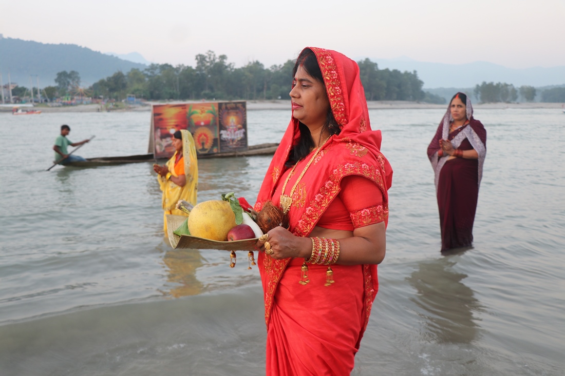 छठ पर्वको मुख्य दिन : आज अस्ताउँदो सूर्यलाई पूजाआराधनागरी अर्घ दिइँदै