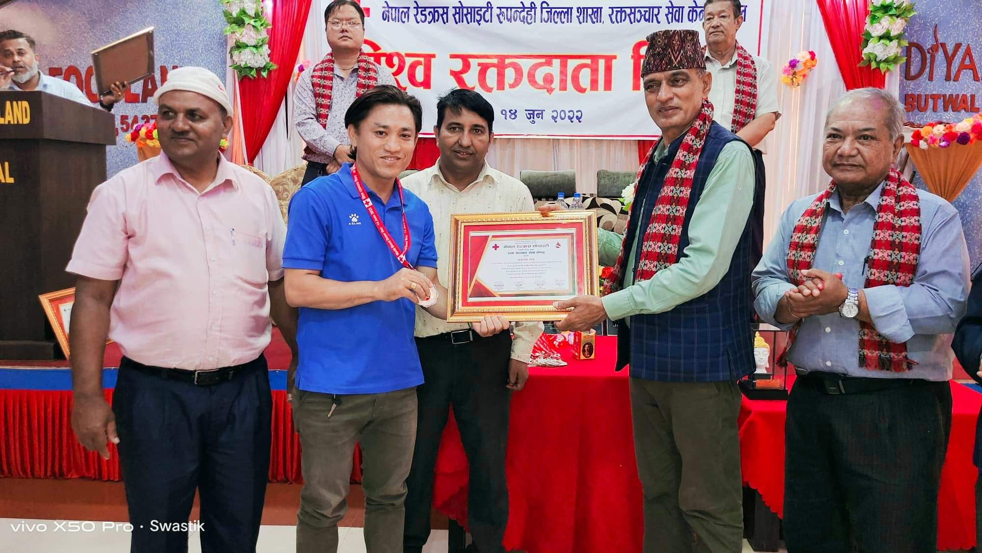 विश्व रक्तदाता दिवसमा रक्तदातालाई सम्मान