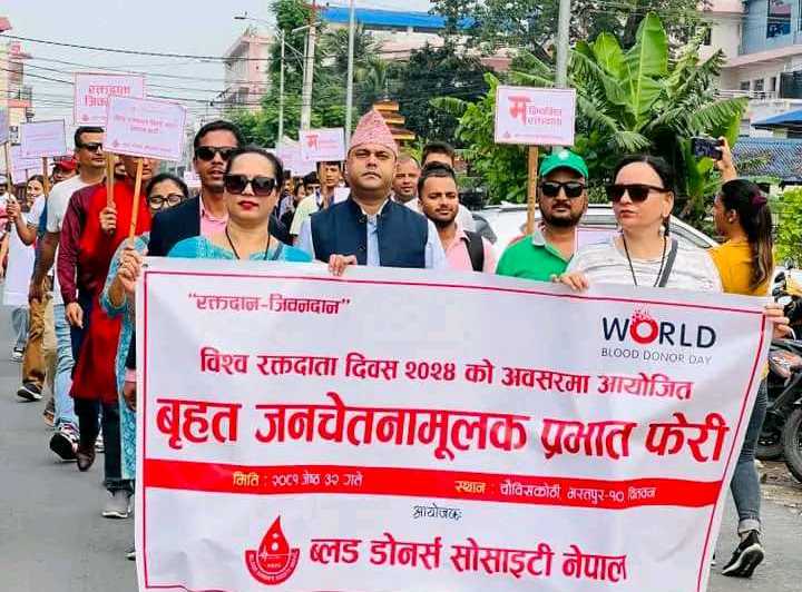 विश्व रक्तदाता दिवसमा ब्लड डोनर्स सोसाईटीको जनचेतनामूलक प्रभातफेरी सम्पन्न
