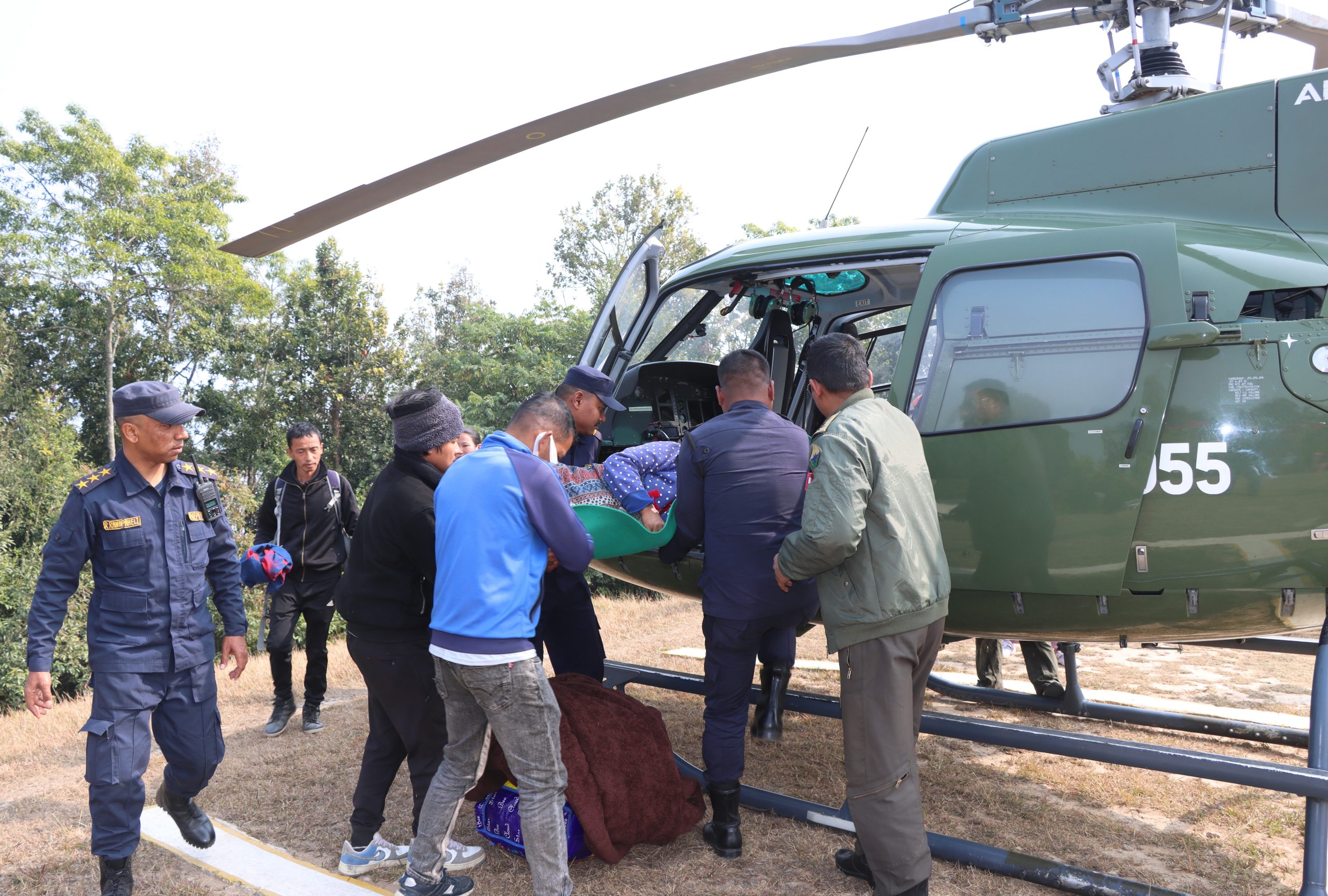 सङ्खुवासभा अस्पतालबाट हेलिकप्टरमार्फत गर्भवती र सुत्केरीको उद्धार : गर्भमै शिशुको मृत्यु
