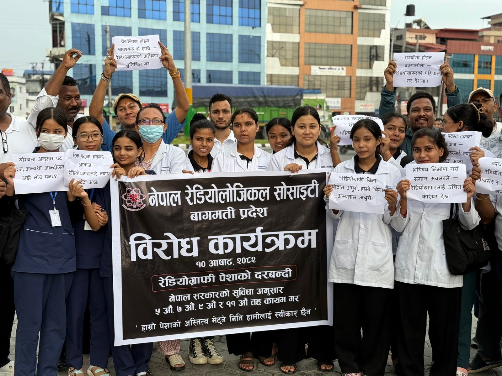 रेडियोलोजिकल सोसाइटीको चितवनमा प्रदर्शन, ‘हामी न्याय चाहन्छौं’ भन्दै सडकमा उत्रिए