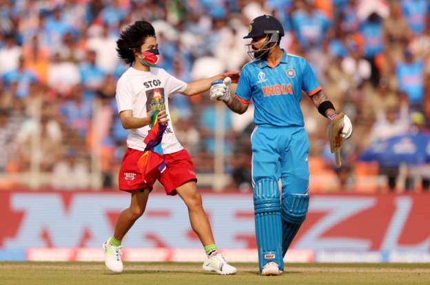 जब ‘फ्री प्यालेस्टाइन’ टिसर्ट लगाएर झण्डा बोकेका दर्शक कोहलीको नजिक आए…
