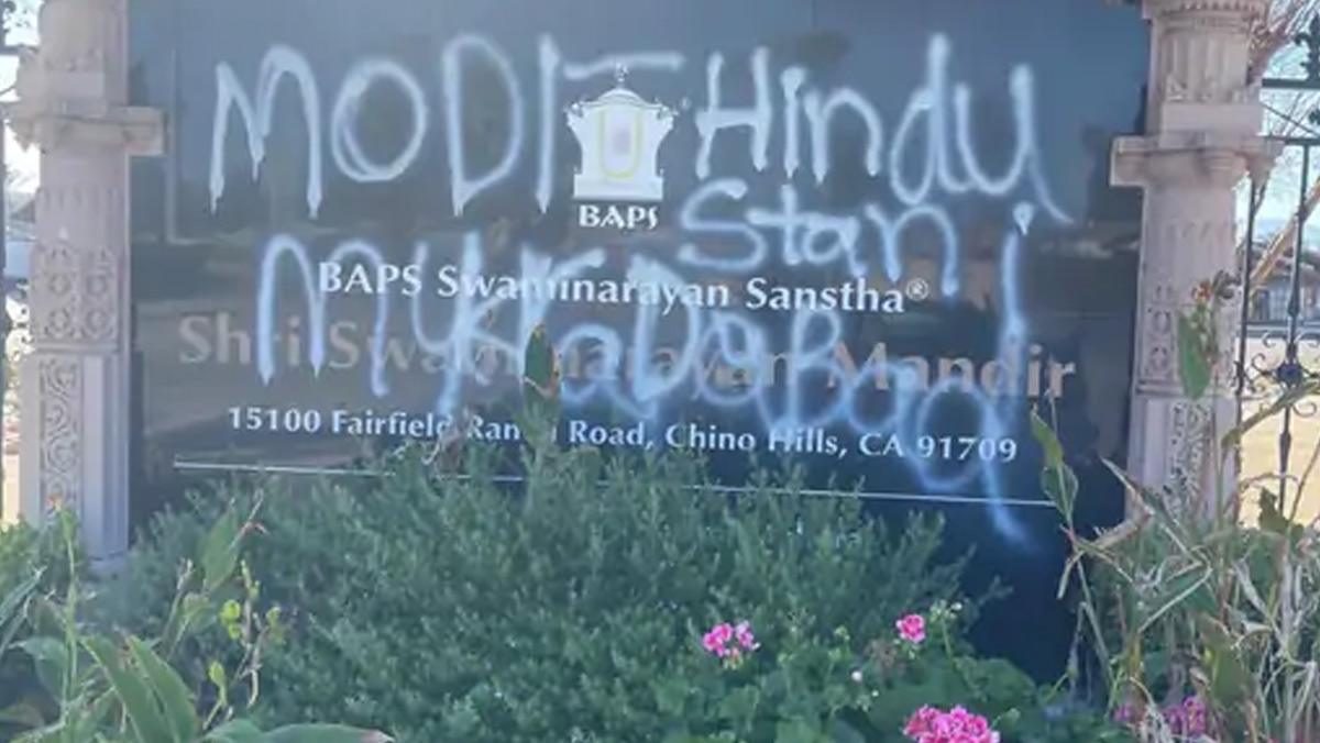 अमेरिकामा हिन्दू मन्दिरमा तोडफोड, आपत्तिजनक नारा लेखियो