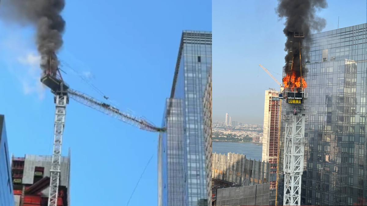 जब न्यूयोर्क सिटीमा गगनचुम्बी क्रेन आगो लागेर जमिनमा खस्यो (भिडियो)