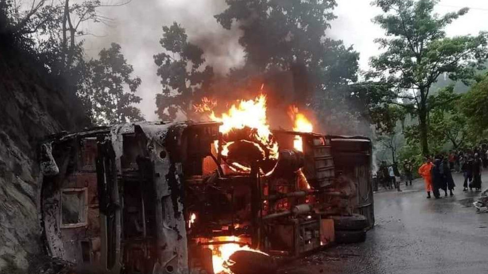 बसमा आगलागी हुँदा १२ जनाको मृत्यु, ३० जना घाइते
